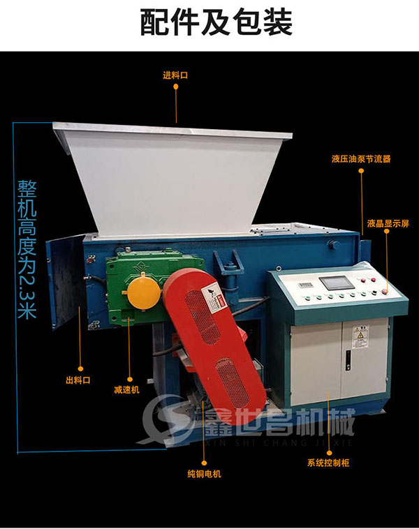 通過主軸扭矩帶動固定刀片對物料進行刮切在液壓推料輔助裝置作用下達到高效破碎的目的。經(jīng)過撕碎的物料再通過設備底部篩網(wǎng)進行過濾,從而完成整個單軸撕碎機破碎加工過程,在設備選型上鑫世昌機械提供多種定制方案為不同用途的客戶提供不同輥徑及牙數(shù)的刀輥。